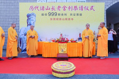7月1日上午10点,东莞观音山观音寺两序僧众在观音山门楼处,举行盛大的999颗历代诸山长老舍利恭请仪式,十方善信,共证菩提。据观音山相关负责人介绍,999颗历代诸山长老舍利将在观音山观音寺大悲殿展出,时间从7月1日至7月31日,并表示,这也是一年一度第八届观音山观音文化节的第一场活动。
